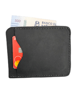 Rogue está elaborada en piel de res, ofreciendo una textura suave pero firme, pensada para acompañarte por mucho tiempo. Su diseño delgado permite llevar billetes y tarjetas de forma organizada sin abultar el bolsillo.